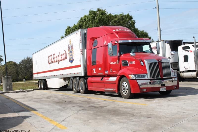 Western Star 5700 XE, C.R.England - piros/fehér