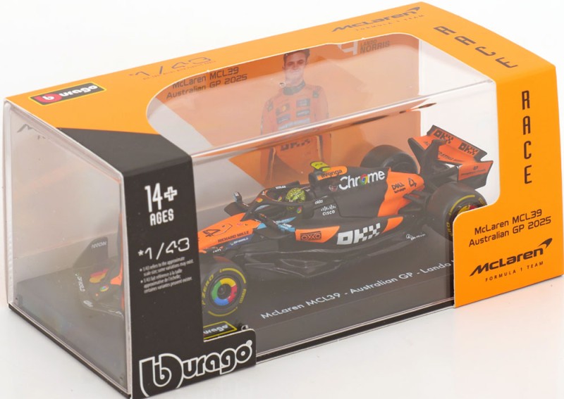 McLaren MCL39, Norris (figurával, vitrinben) - 2025