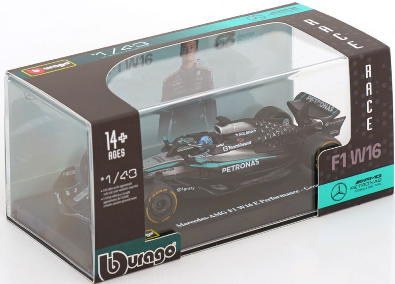 Mercedes AMG W16, Russell (figurával, vitrinben) - 2025